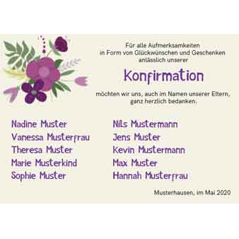 - Über die vielen Aufmerksamkeiten, Glückwünsche, Blumen und Geschenke zum Fest unserer Konfirmation haben wir uns sehr gefreut und danken, auch im Namen unserer Eltern, recht herzlich.