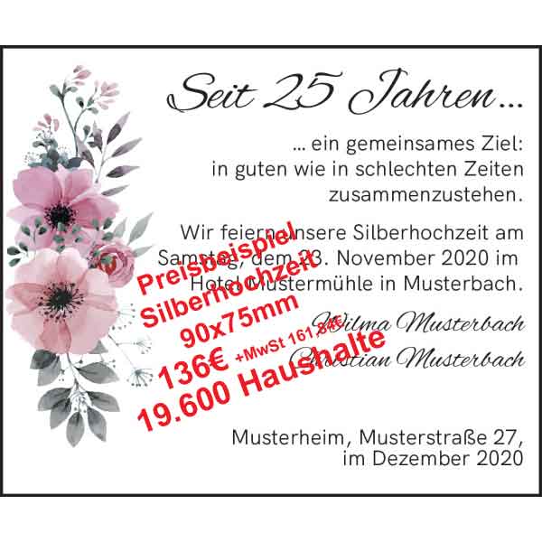 90x75mm 136 € + MwSt 161,84 €; 19.600 Haushalte