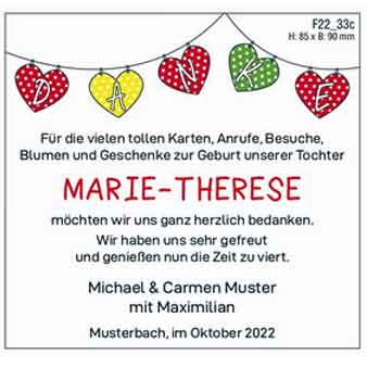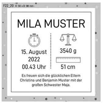 Ihre Geburtszeitsanzeige und Danksagung können Sie mithilfe unserer Mustervorlagen für Gestaltung, Verse und Textvorschläge individuell