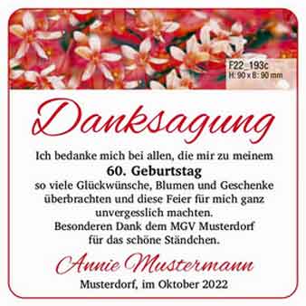 Ihre Geburtstagsanzeige und Danksagung können Sie mithilfe unserer Mustervorlagen für Gestaltung, Verse und Textvorschläge individuell
