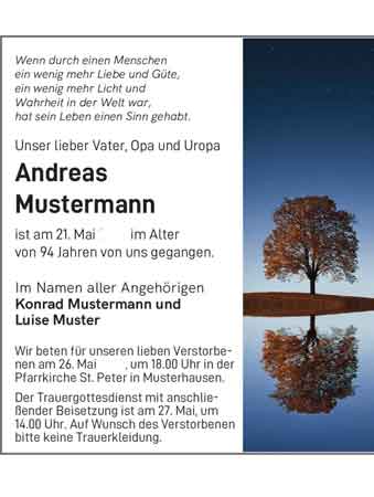 Unsere Traueranzeigen Muster und Vorlagen sind geeignet für: