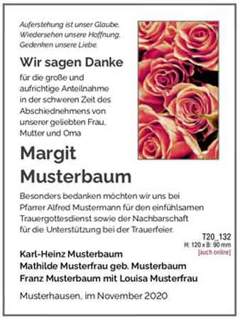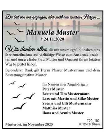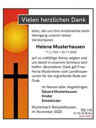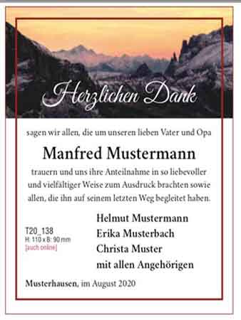 - mit einer Danksagung sich für die Anteilnahme und Bekundungen jeglicher Art zum Tod eines Verstorbenen bedanken