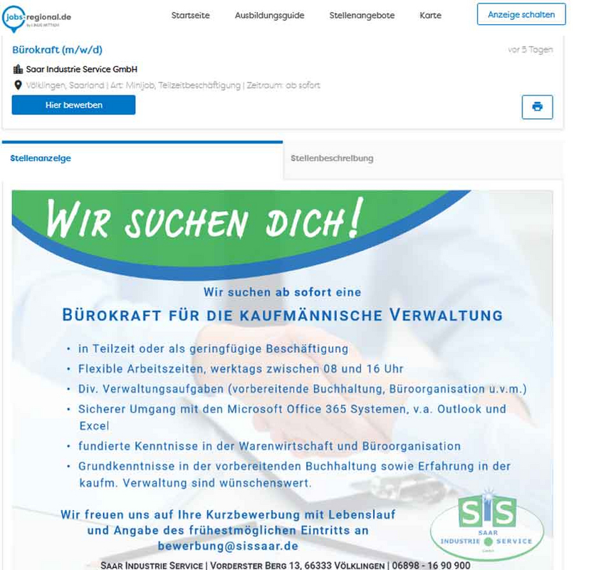 Suchen Sie Ihre neuen Mitarbeiter w/m/d auf unserer Jobbörse jobs-regional.de und finden Sie regionalverbundene Menschen für Ihr Unternehmen. Sie können einfach Ihre Printanzeige online verlängern oder nur online schalten.
