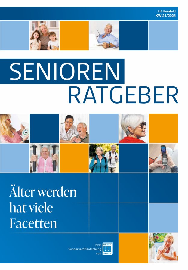 "Seniorenratgeber & Gesund und Fit bis in's hohe Alter" im Landkreis Hersfeld-Rotenburg ist ein kostenfreie Zeitschrift mit regionalen Informationen und Meldungen, welche nach Bedarf mit einer Auflage von ca. 18.000 Exemplaren an alle erreichbaren privaten Haushalte und Unternehmen innerhalb des Verbreitungsgebietes Landkreis Hersfeld-Rotenburg von der LINUS WITTICH Medien KG Herbstein produziert und veröffentlicht wird.