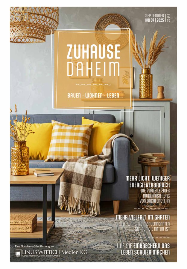 Zuhause daheim informiert Sie über alle neuen Trends zum Thema Bauen, Wohnen, Garten, Inneneinrichtung und Immobilien. Vom Handwerker über den Immobilienmakler bis hin zu Versicherungen und Finanzierung erhalten Sie hier wertvolle Tipps. Unternehmen, vorwiegend aus dem Bereich Kreis Altenkirchen, informieren über ihr Leistungen und Angebote