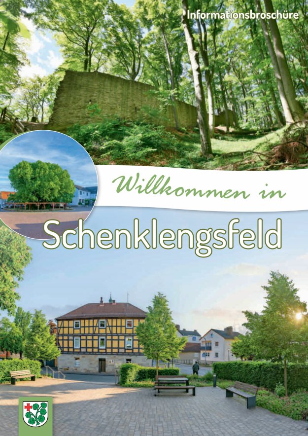 Informationsbroschüe der Gemeinde Schenklengsfeld. In dieser Informationsbroschüre finden Sie Wissenswertes über die Gemeinde, einschließlich Verwaltungserreichbarkeiten, Ortsteile, Vereine und interessante geschichtliche Hinweise.