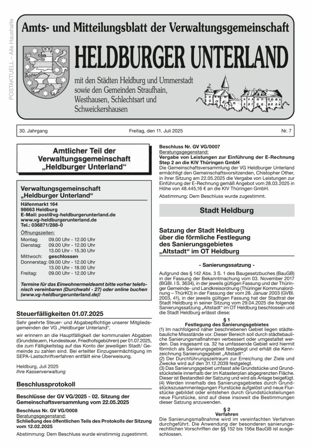 Amts- und Mitteilungsblatt der Verwaltungsgemeinschaft "Heldburger Unterland"