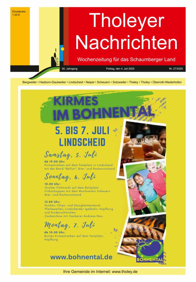 Wochenzeitung für Bergweiler, Hasborn-Dautweiler, Lindscheid, Neipel, Scheuern, Sotzweiler, Theley, Tholey, Überroth-Niederhofen
