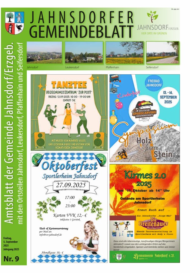 Das Amtsblatt der Gemeinde Jahnsdorf/Erzgeb. erscheint monatlich.