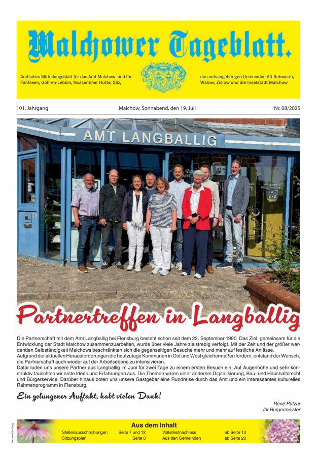 Mitteilungsblatt mit amtlichen Bekanntmachungen des Amtes Malchow, der amtsangehörigen Gemeinden und der Inselstadt Malchow