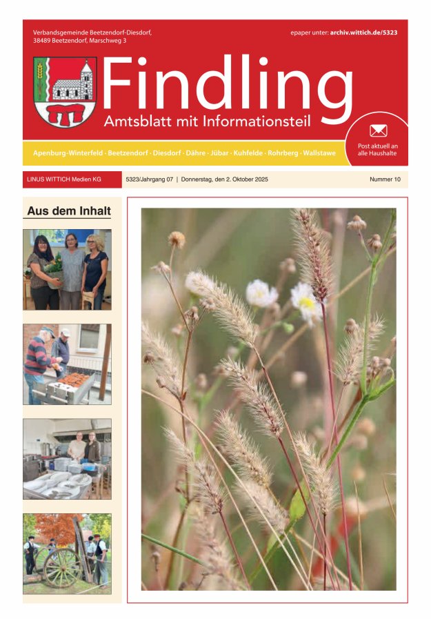 Amtliches Mitteilungsblatt der Verbandsgemeinde Beetzendorf-Diesdorf. Das Mitteilungsblatt erscheint seit 2019 monatlich und wird an alle Haushalte der Verbandsgemeinde verteilt. Das Mitteilungsblatt wird von der LINUS WITTICH Medien KG Fritzlar als Zeitung und ePaper herausgegeben. Der Inhalt besteht überwiegend aus amtlichen Mitteilungen der Verbandsgemeinde Beetzendorf-Diesdorf und Berichten von ortsansässigen Vereinen und Verbänden, enthält Anzeigenwerbung.