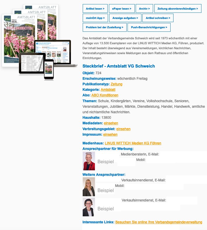 - Link zur meinOrt Web-App mit Text-Artikeln aus der Zeitung, Online-Anzeigen und zusätzlichen Berichten, die nicht in der Zeitung stehen